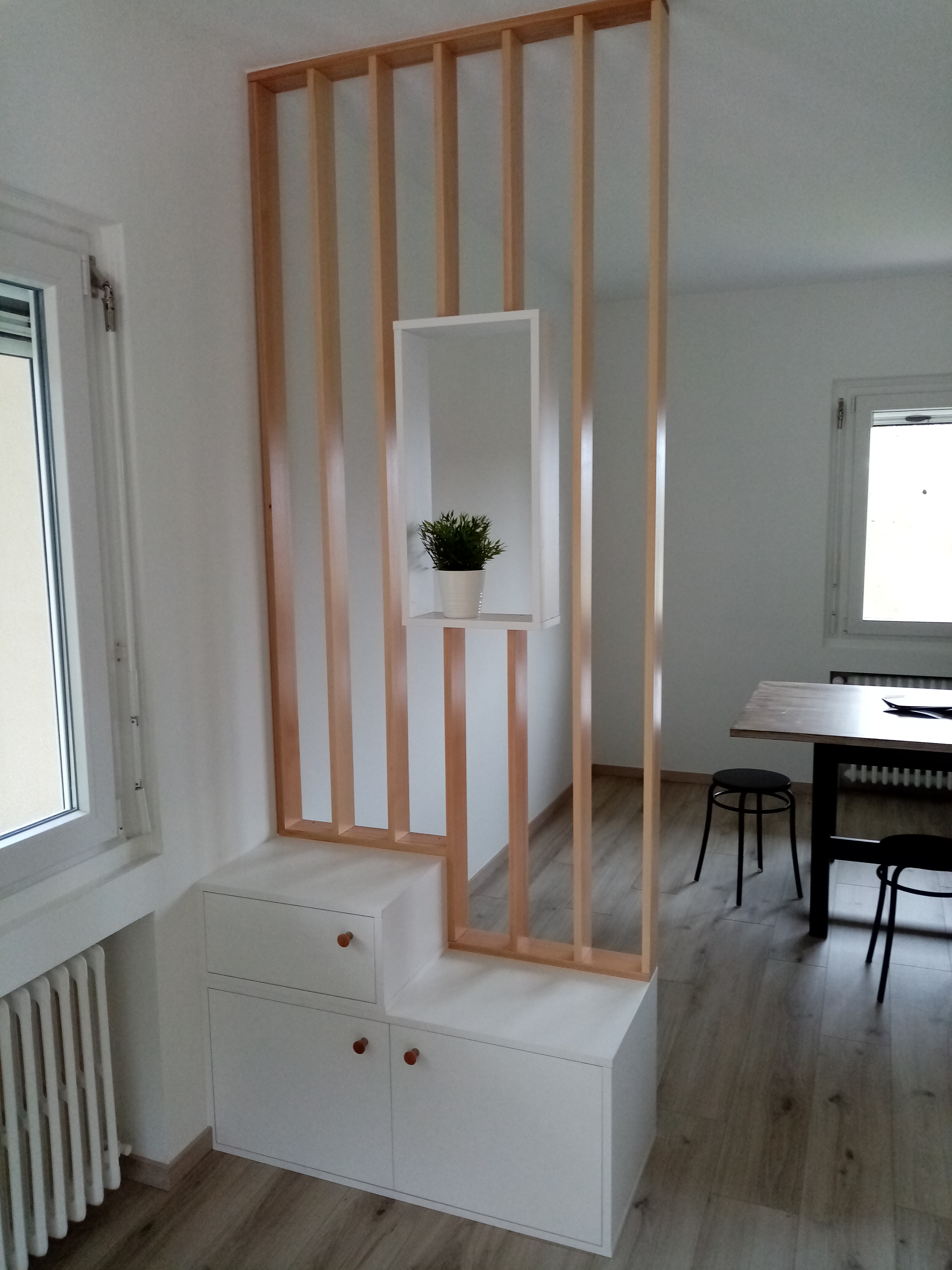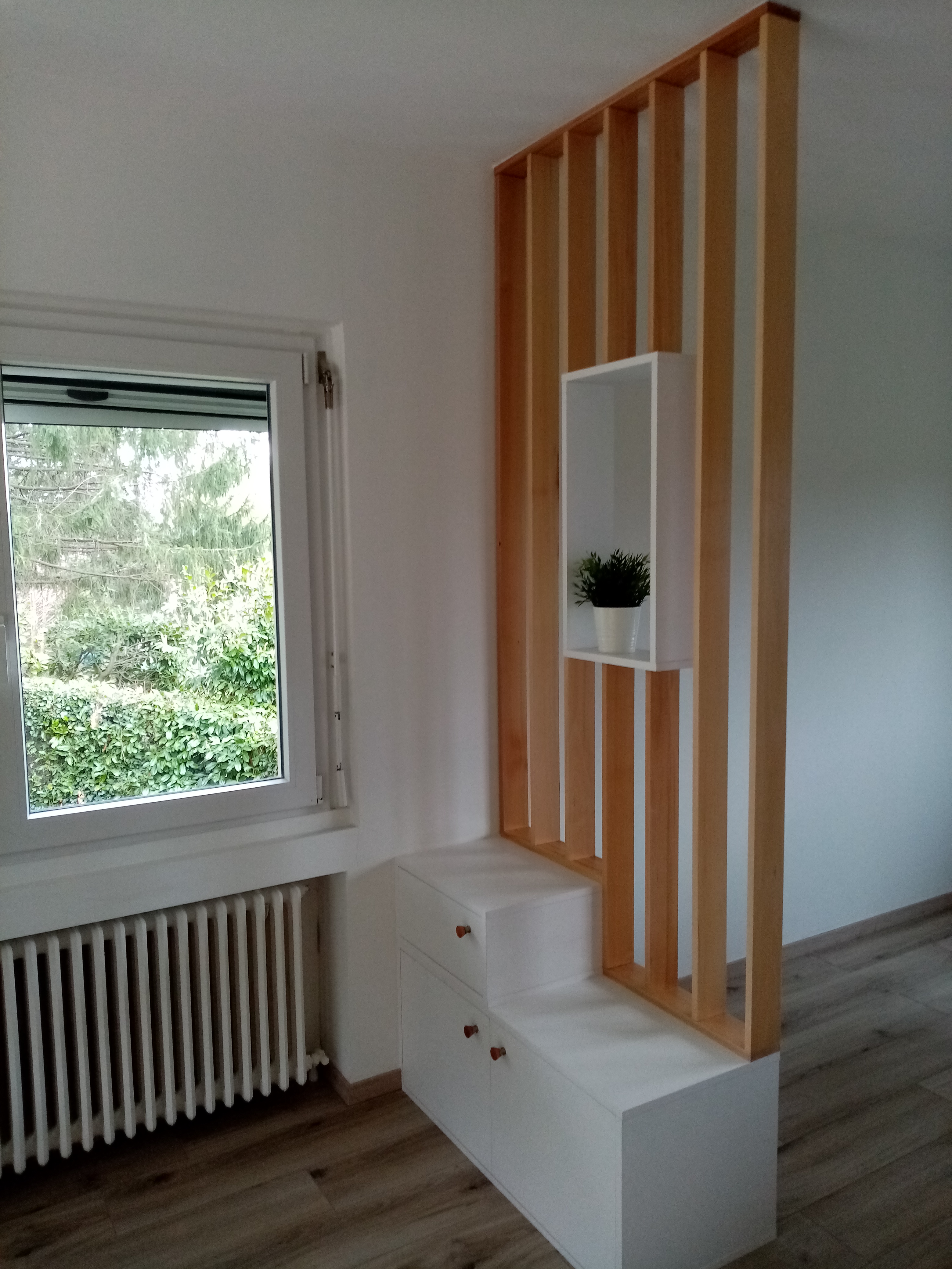 fabrication de claustra en hêtre massif avec caisson en mélamine blanc poser a st Priest en Jarez (avril 2021) claustra en hêtre massif et avec caisson mélamine blanc caisson en mélamine blanc