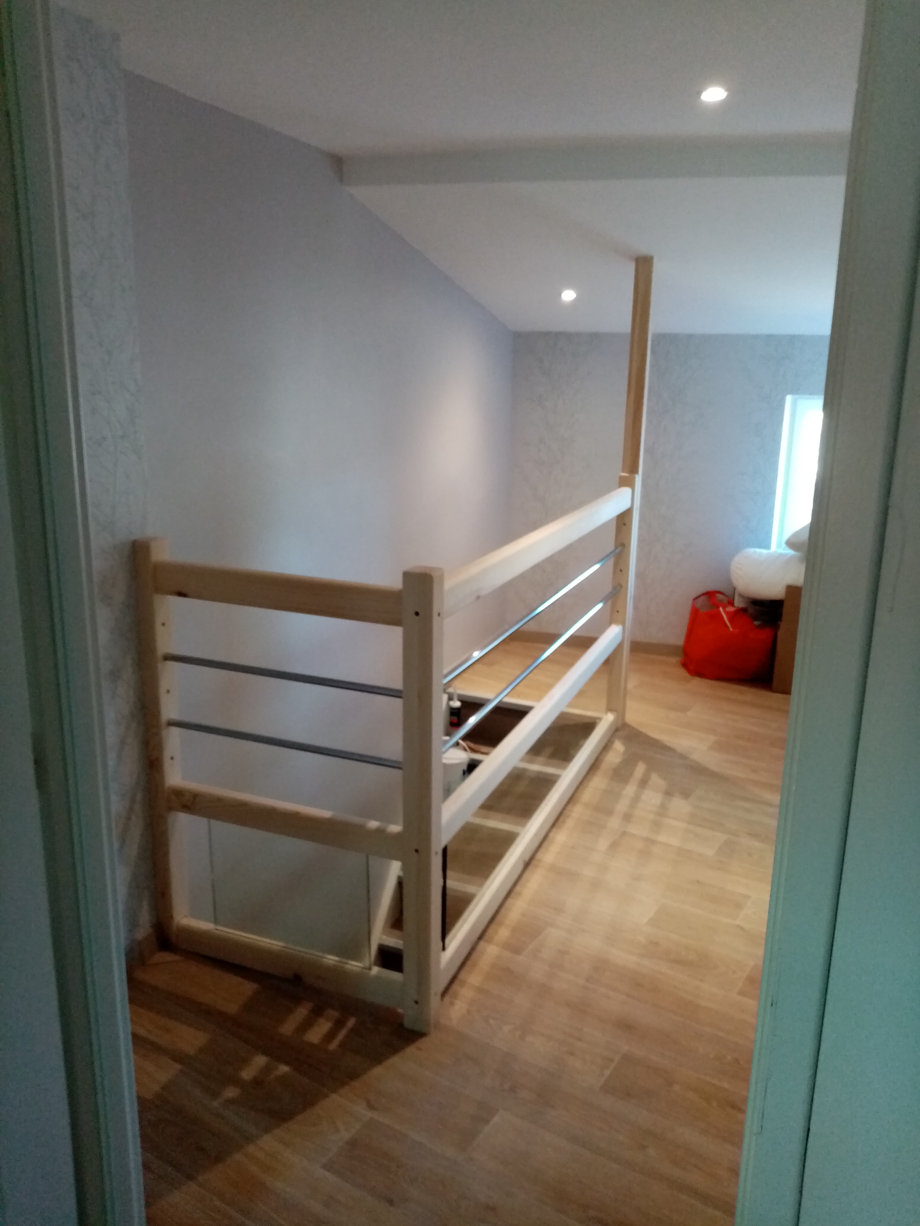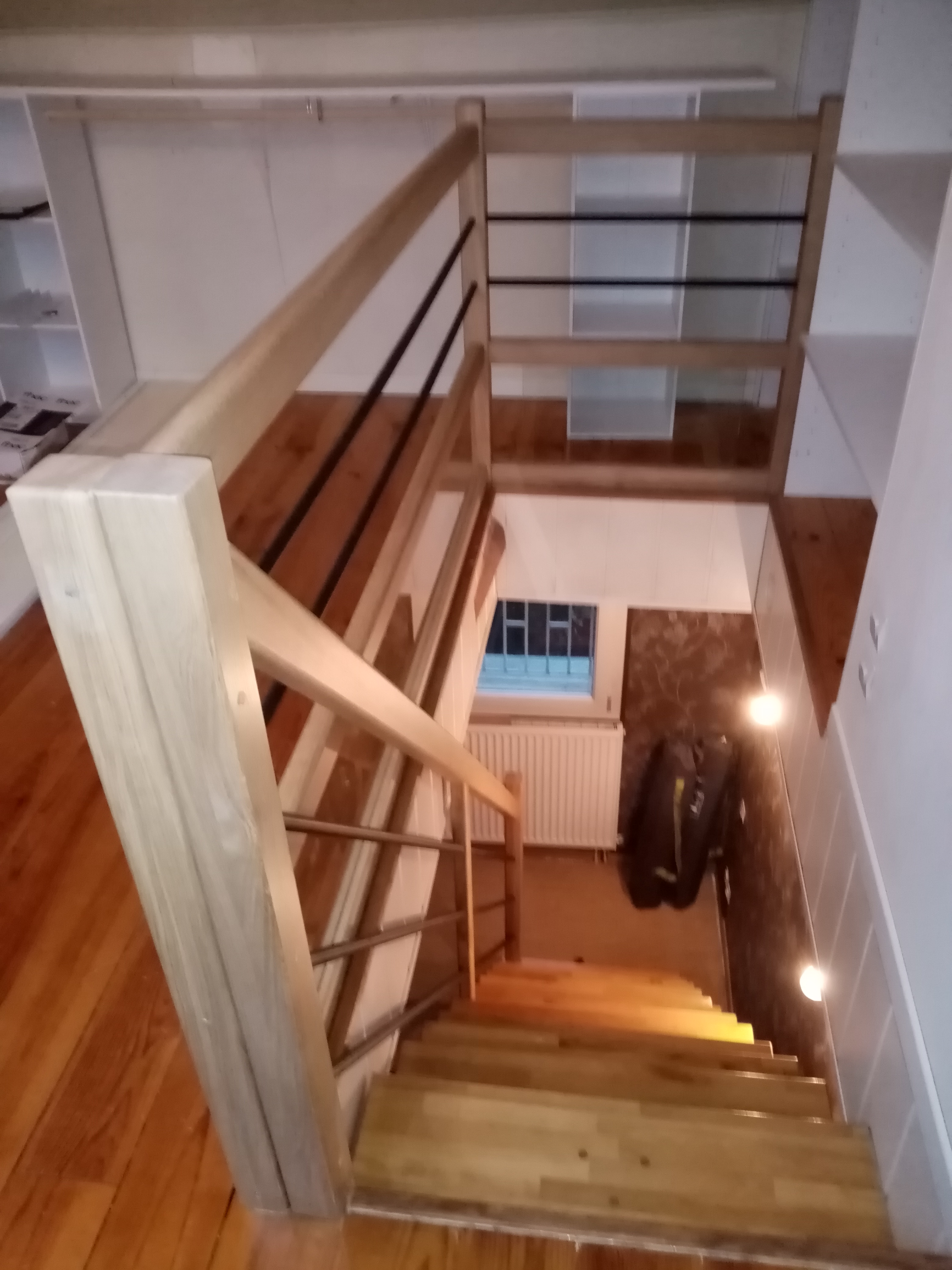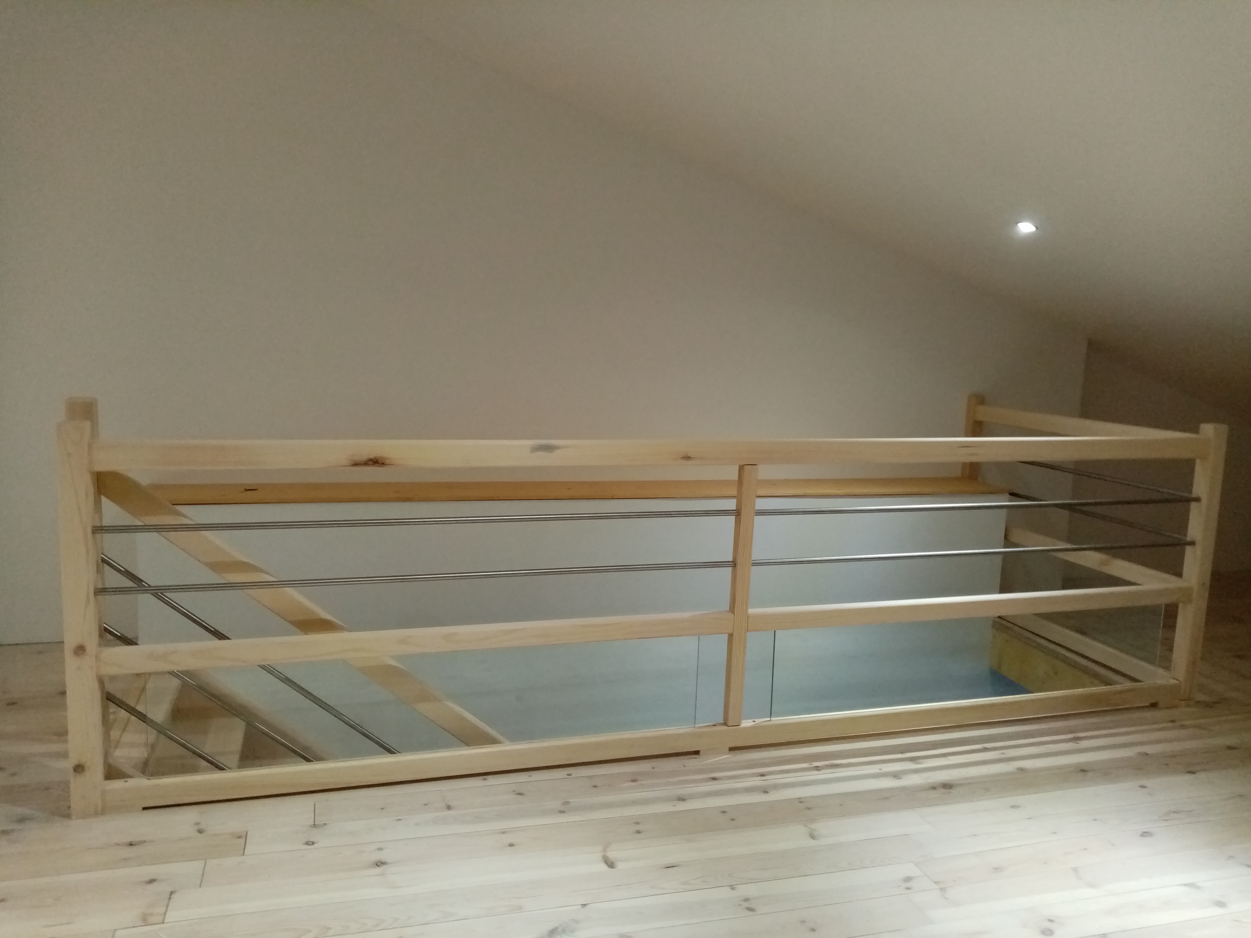 les gardes corps étage ou rampant sont fabriquer sur mesure en bois (pin,hêtre,chêne...) avec un mélange de métal et de verre selon le choix du client